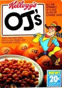 Cereals of '85: Kellogg's introduced a cereal called "OJ's" in 1985. The new cereal, which boasted "10 percent real orange juice and natural flavors," lasted only to 1986 before being discontinued, but has been the subject of an online petition to bring it back. (As someone addicted to orange flavor, I regret not being able to sample this cereal). Although in hindsight, if the cereal was still around in 1994, with its name unchanged, things would have been messy for Kellogg's. Here is a commercial from OJ's heyday.