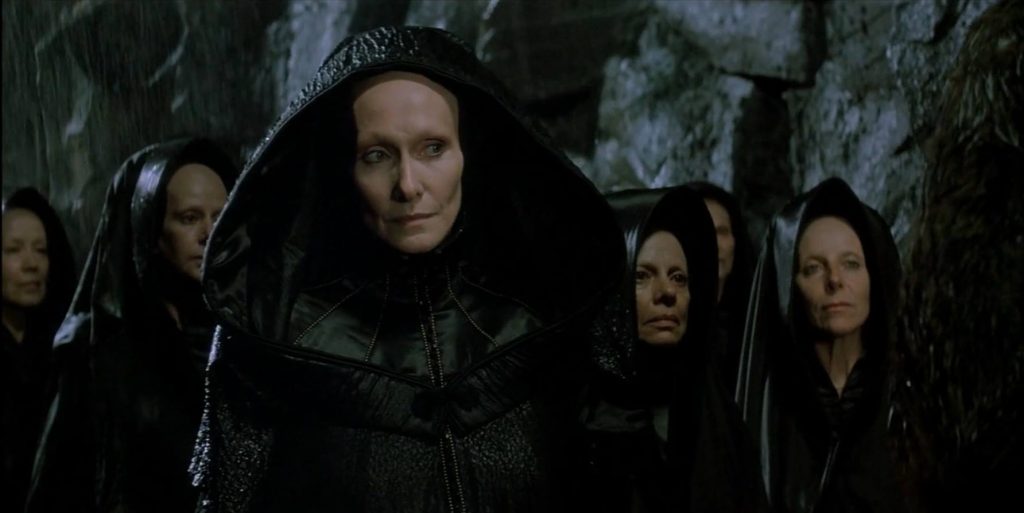 The fact that ChD ends with the Bene Gesserit and Honored Matres being united under Murbella also prefigures one of two interpretations in Star Wars of what it means to bring balance to the Force – the interpretation, dominant in the tv series, where it is the light and the dark sides that need to be balanced, as opposed to the interpretation, dominant in the movies, that balance represents the triumph of light/balance over dark/imbalance. Moreover, members of the Bene Gesserit Sisterhood are often referred to as “witches” while of course the second Clone Wars tv series has its own sisterhood of mystical warriors, the “Nightsisters,” or “Witches of Dathomir.”