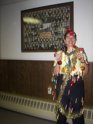 We had a decorate the 'tree' relay - the first team to plug in their tree won - Guess who that was...
