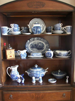 BLUE - these dishes were Mom's - she got them at the A&P grocery and they all have images from the Revolution - they were made by Staffordshire for the Bi-Centennial - so they're from 1976 - we used them every day when I was growing up - but now they're 'collectible' - we still use them a lot - but not everyday...