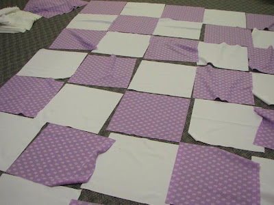 ...I laid out the quilt - this one is just going to be alternating blocks of white and purple...