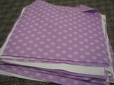 ...The stack of white and lavender polyester was donated - so first you need to cut squares - 35 - 12 inch blocks will make one LWR quilt...