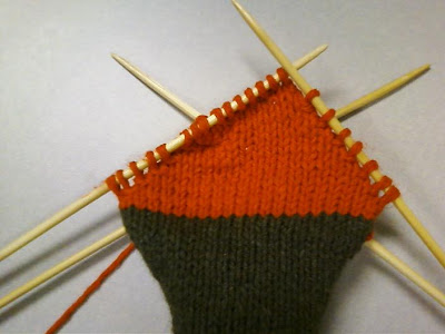 I wanted to do a "toe up" sock...but I wanted the heel and instep of a "top down" sock...so I just combined the two...directions for the traditional toe are below: