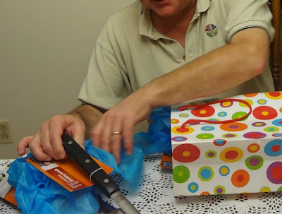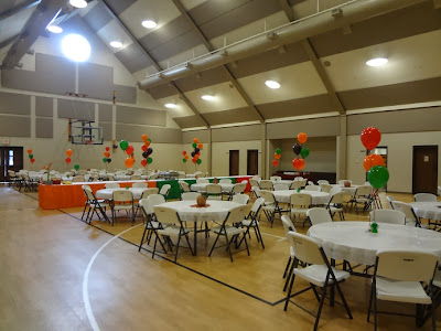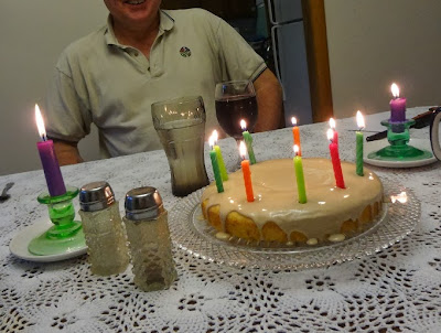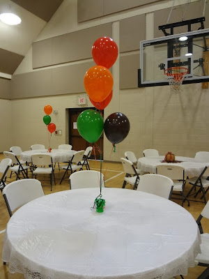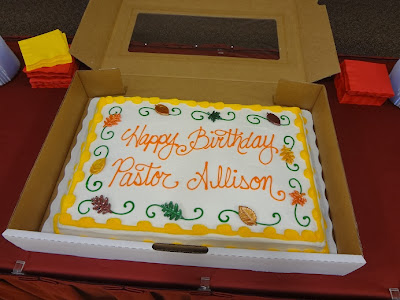 ...has had a birthday!... ...he got a few cards... ...we celebrated a little bit at home...with cake... ...and pressies... ...but the big surprise was at Church!... ...where there were secret decorations... ...with a pretty fall theme... ...with table decorations... ...and balloons...always more of a party with balloons...don't ya' think?... ...and of course there was cake... ...and lots of well wishers...