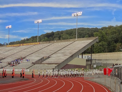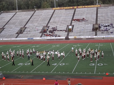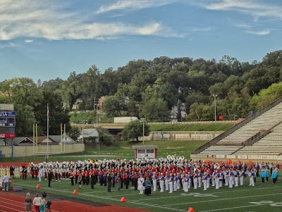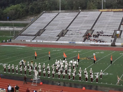 ...after the high school bands...the WVU marching band marched in...there are over 300 of them and they all don't even fit into the picture...