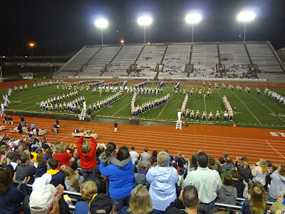 ...lined up and ready to 'run' onto the field...that is one big band!...