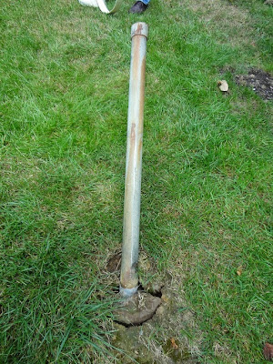 ...our neighbors told us that they had only ever seen this post support a bird feeder...but we think it may have been for one of those 60s umbrella type clothesline thingies...so we didn't think that it would be that deep...HA!