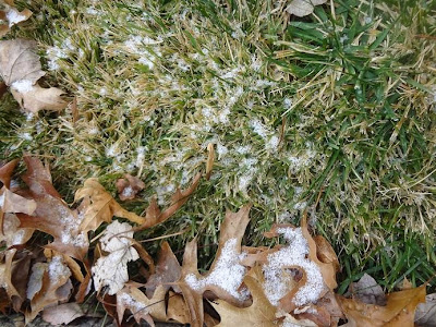 ...and sticking lightly to the ever browning grass blades and fallen leaves...
