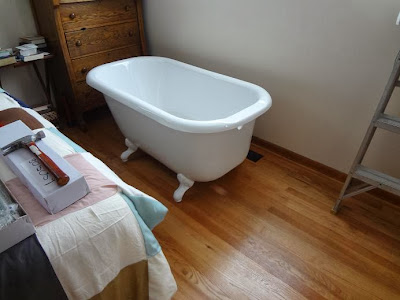 ...just a quick peak at the claw foot tub that will be going in the Master Bath...where lots of work is now going on...since we've had to move inside because it's so cold out...