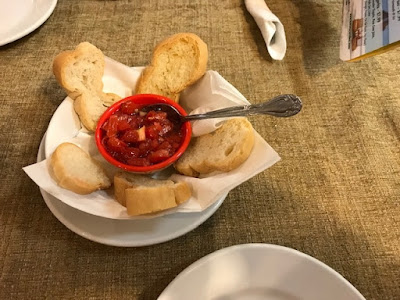 ...so let's go back to Friday and have a little Dinner and a Movie...and the Man and I actually went out for dinner...on a Friday night...shocker...I know...we went to a Cuban restaurant...and they first brought us this bruschetta-like appetizer...