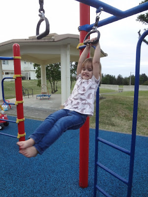 ...she also wants to swing on the big-girl swing...so you have to be pretty careful with her there...