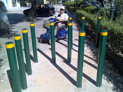 Ερωτώ λοιπόν, η πλήρης αποδοχή της κατάρρευσης κάθε έννοιας αστυνόμευσης, (δημοτική αστυνομία, τροχαία,) αιτιολογεί την παραγωγή εμποδίων ως πρόταση επίλυσης;