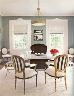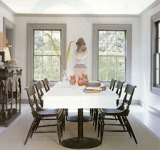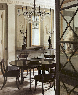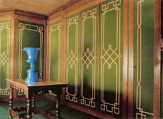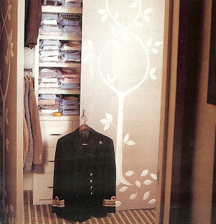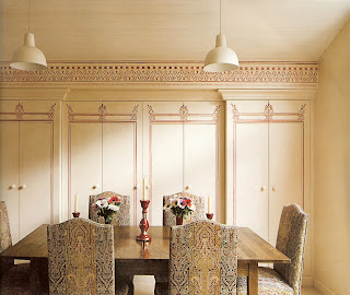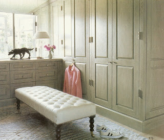 OK, these last two images aren't technically 'dresssing closets' but I included them because I like the idea of plain white doors, but with detail added by painting on an architectural design.