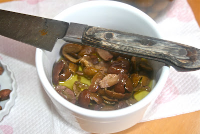 I don't have a wok, so I used my favourite pot, it gets very hot. Heat a tbsp of vegetable oil, add the mushrooms (be careful, they have a lot of water and they will pop in the hot oil), stir for a few minutes, then add the carrots and the white part of the bok choy. Stir and cook for two minutes.