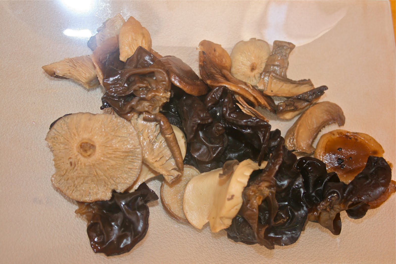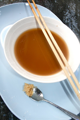 In the meantime make a thickening sauce. Add one tsp of cornflour to the water of mushrooms, a tbsp of say sauce, salt and pepper to taste, and half a tsp of freshly grated ginger. Personally I don't like to have too much sauce, but if you do, just add more water and cornflour.