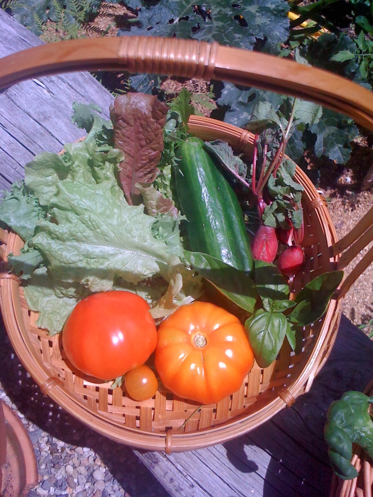 A basket of veggies from the garden to make soup