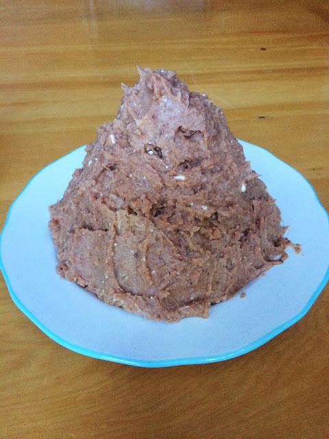 Scoop the coconut cream out of the tin (leave the water at the bottom) and beat until soft and foamy. Add sugar and vanilla. Set aside. Beat the two chestnut purees together (I added the coconut water to make them softer). Add some grated chocolate (about 2-3 tbsp, or to taste) and if you like a little alcohol. Spoon the chestnut mixture over a plate and shape like a peak. Then cover with the coconut cream.