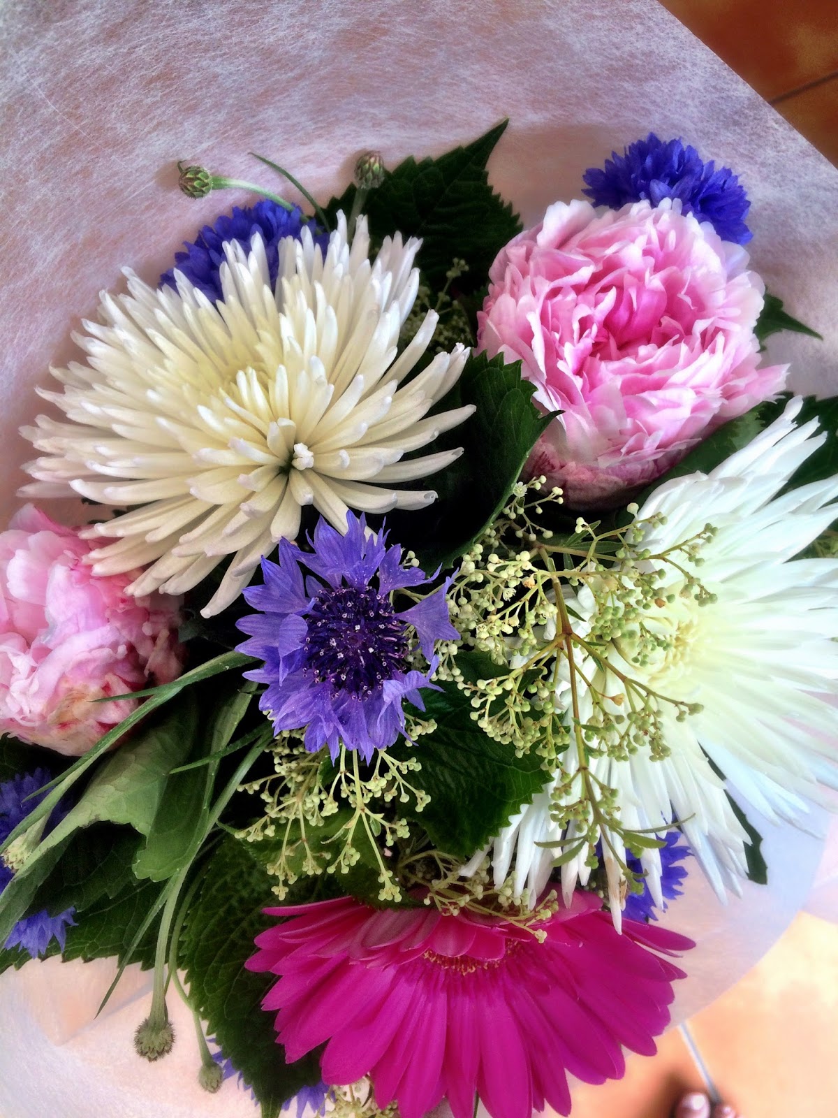 Keep a few flowers aside for decorations, and onion weed flowers too, if you like. I think that a lot of people now are comfortable with eating nasturtium flowers and buds (I left some buds for decoration too, and for you to see). Buds taste a little like capers. Young tender leaves are nice too (see soup below). Not so many people would eat Impatiens though, or know about them. They taste a little like rocket, and I prefer the red ones, although I always add a few pink ones just because the colour is so pretty. My preference for red ones may be just because I observed the chickens eating all the red ones while leaving behind the other colours, but maybe they are just colour blind? Anyway, I tasted all the colours and decided that the chicken were right... Of course don't eat the flowers if you spray your garden with chemicals!