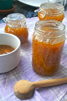 If using capsule lids, seal the jars well, place in a pot and cover with water. Bring to the boil and simmer for 20 to 30 minutes, depending on the size of the jars. Let the jars cool down in the pot overnight and when they are cold make sure that the capsule has popped by pressing gently on the lid. Properly sterilised jars will keep for over a year.