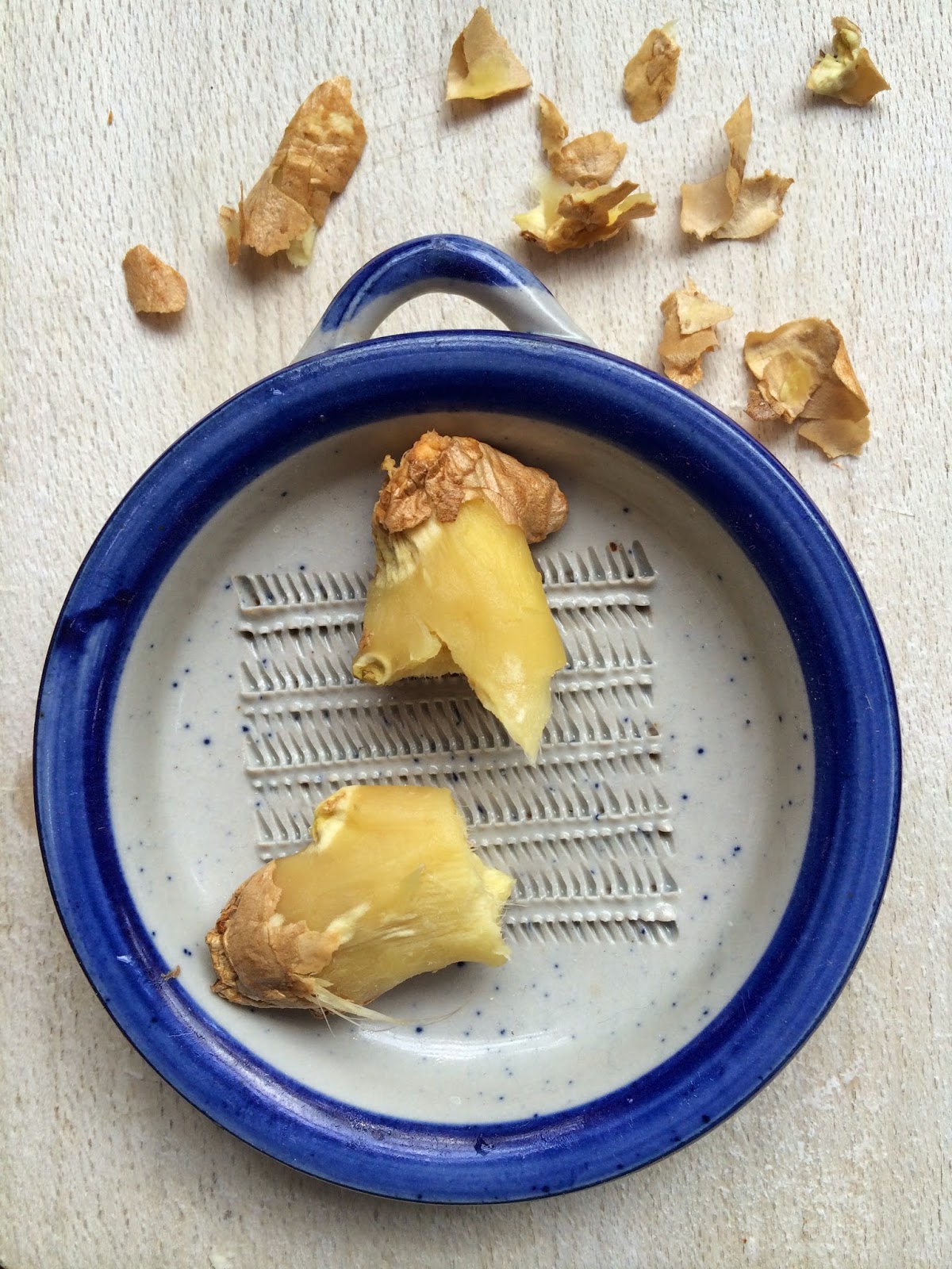 For this stir fry I used bamboo shoots (previously cooked as above), oyster mushrooms, and carrots. Heat a little vegetable oil with a few drops of sesame oil, add a tsp of mince ginger and then the chopped vegetables. Cook for a few minutes, stirring, then add a tbsp of lemon juice and 2 tbsp of Japanese soy sauce, lower the heat, cover and simmer for 6-7 minutes, stirring from time to time. Add chopped coriander at the end (optional). Serve with rice.