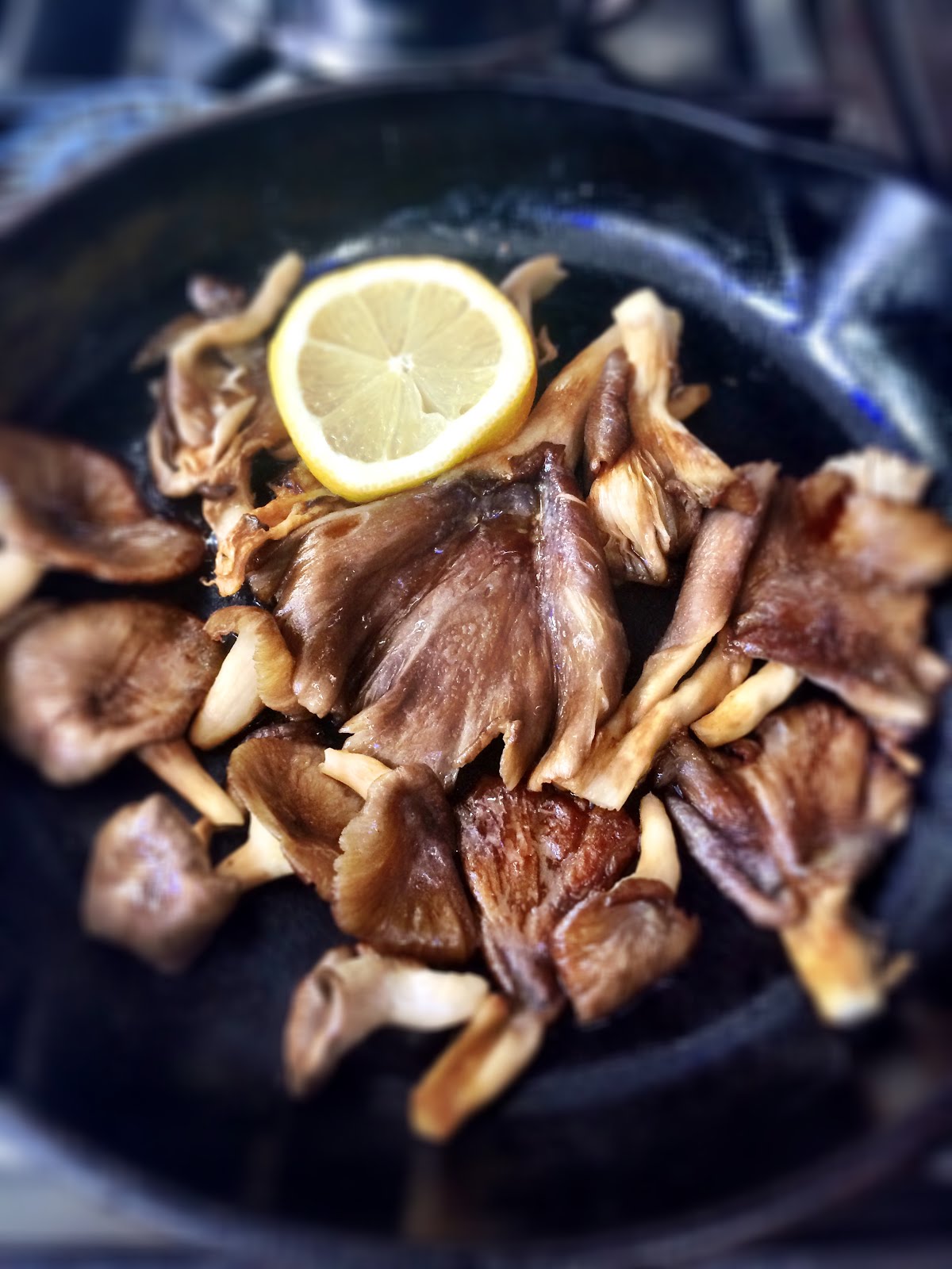 place the oyster mushrooms in a skillet with a little oil or vegan butter and sauté them on both sides. To make mushrooms easy to digest you need to cook them in a way that they 'loose' water, this is important with foraged mushrooms, if there is a toxic one in you mix making it 'loose water' made it edible (or lowered the risks of tommy ache). Button mushrooms and other varieties can be eaten raw, but personally I prefer them cooked. Of course if a mushrooms is deadly this cooking tip is useless, no matter how much you cook it, but this is not a problem we are facing with commercial varieties!