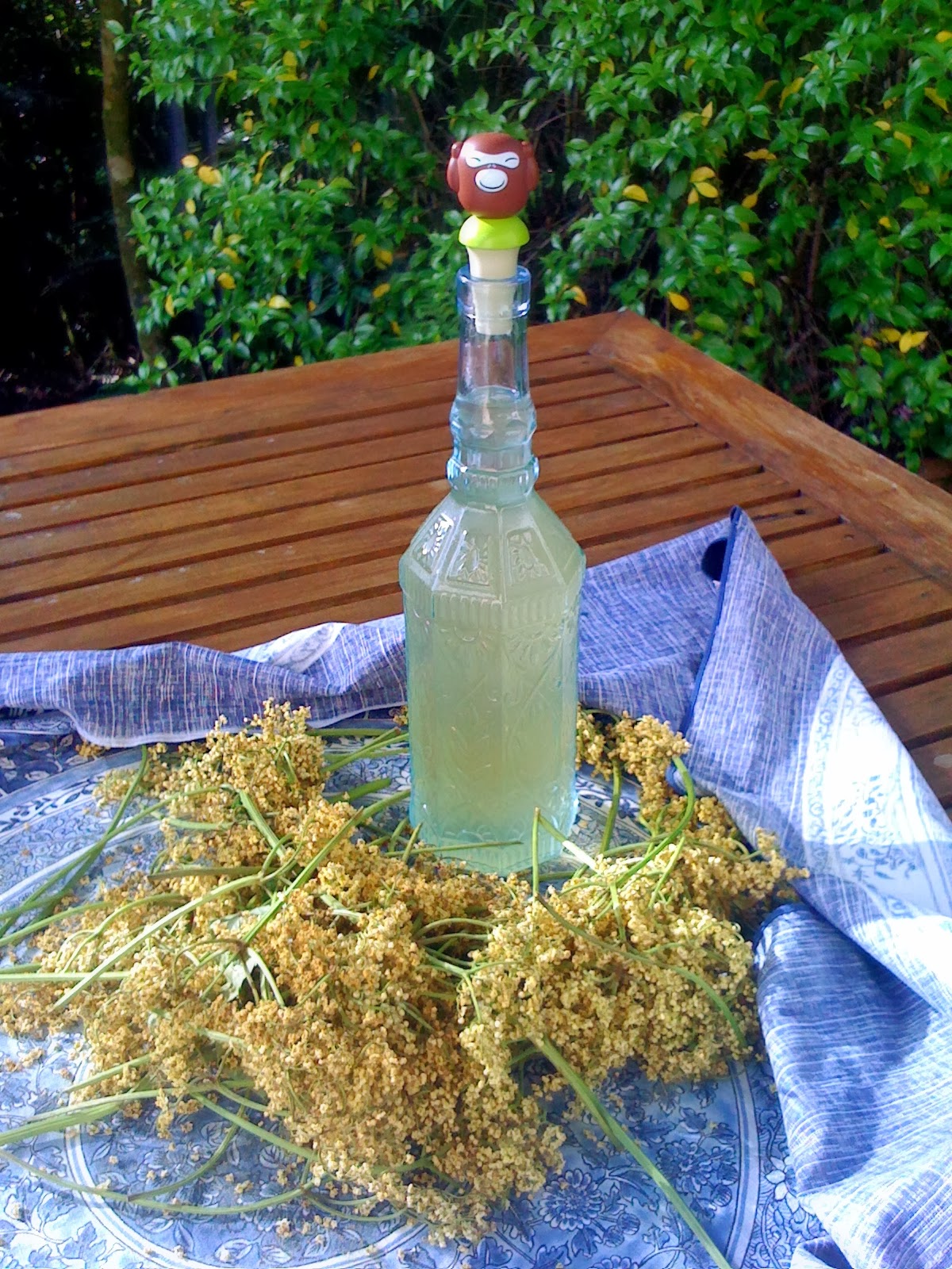 Boil the filtered syrup for 5 minutes, removing any possible scam forming at the top. Cool down and filter again, through a finer cotton cloth this time (I do this in a funnel directly over the bottles. Use as a cordial for water, or as a syrup for cakes and desserts.