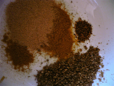 Toast one tablespoon of coriander seeds in a pan, then grind with mortar and pestle.