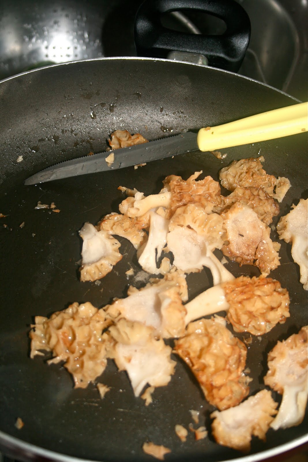 Ohhhh, I love mushrooms, and the Spugnola (the Italian name for morchella) is one of the best!!! Martina just cleaned them and cut them and cooked them in a pan with a little extra virgin olive oil, a little salt, and a little parsley.
