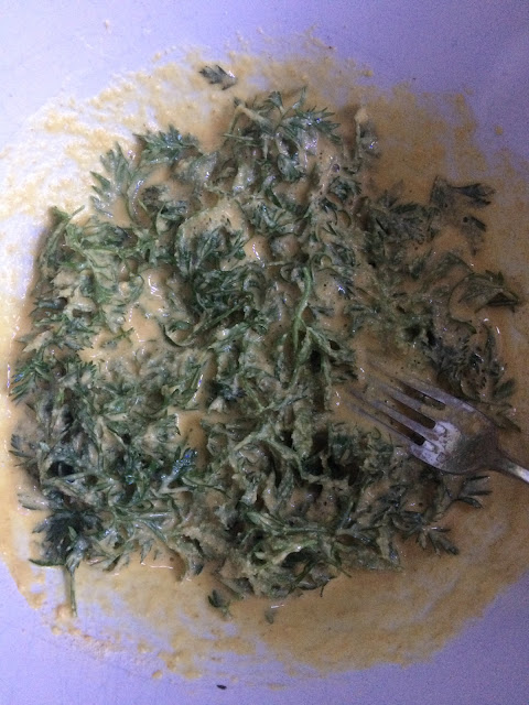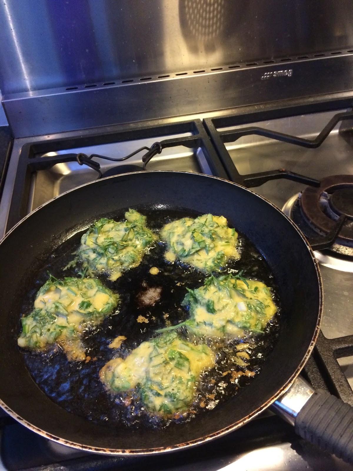 Having munched through everything green in the veggie garden I am left with the leaves of carrots, I usually make frittata with them, or fritters, and this time I tried a vegan experiment which was very successful (the kids looooved them). To be repeated soon, in the meantime here is the recipe.