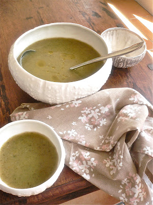 I got a few young borage leaves, some watercress, some puha, then I added a leek and a potato from my garden. I washed the leaves very well, peeled the potato, and cooked everything with water, then I blended the soup, added salt to taste, and finished with a drizzle of good extra virgin olive oil.