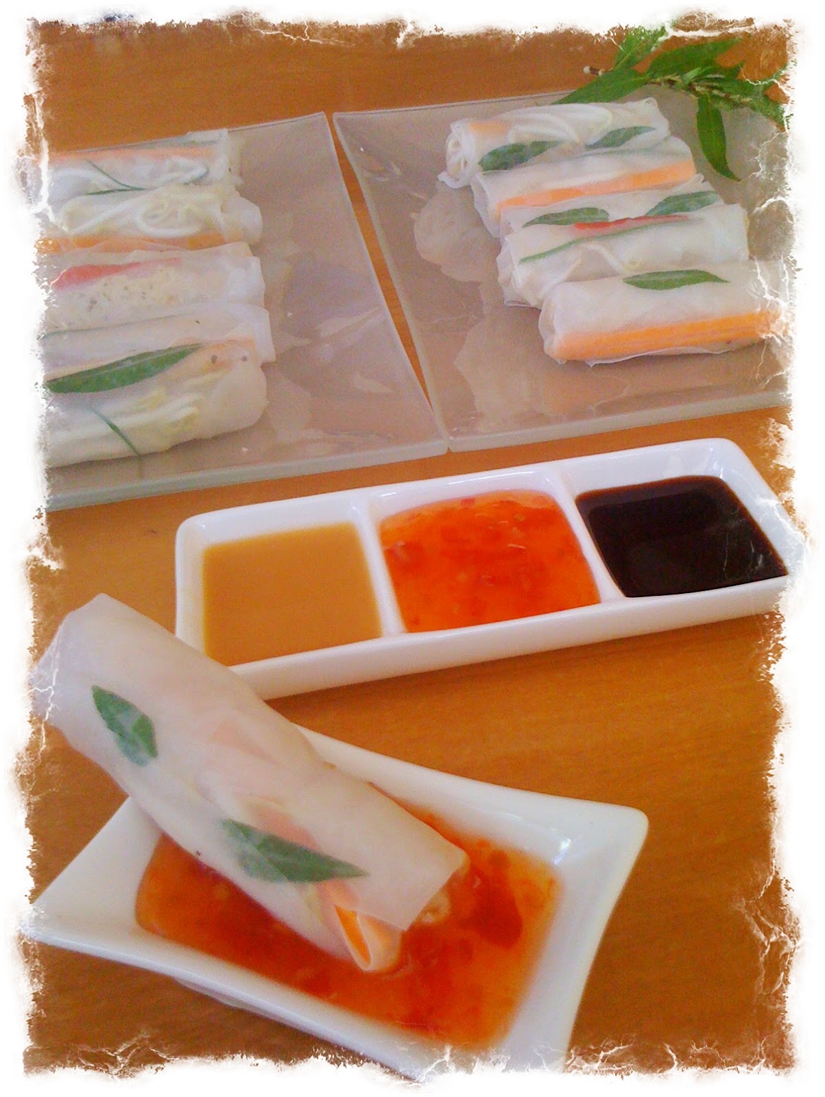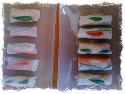 Soak the rice paper disks in hot water, just enough to soften them, and then place them on a clean gauze or kitchen towel. Brush the centre with the sun-dried tomato paste and then fold like shown in the photos.