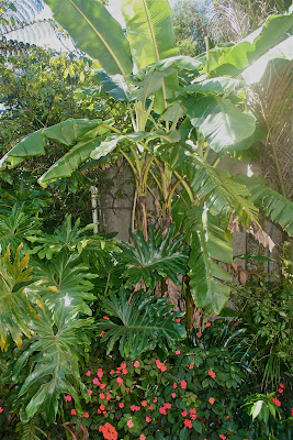 I usually just have the banana blossom 'heart' for salads, but this time I have included a few of the little flowers that are found under the Petals. Cut the banana blossom from the bunch of bananas (leave them on the tree if they are still green) and peel off the outer pink petals, collecting the little blossoms and dropping them in cold water and lemon juice (I added some to the sink).