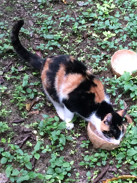 After drinking we used the tender flesh, you can just eat it as it is, or use it in cooking (the best was to pan-fry it with olive oil and smoked salt and eat it as 'vegan bacon'. Then we gave the shells to the cat and it cleaned it up! Never seen a cat eating coconut!