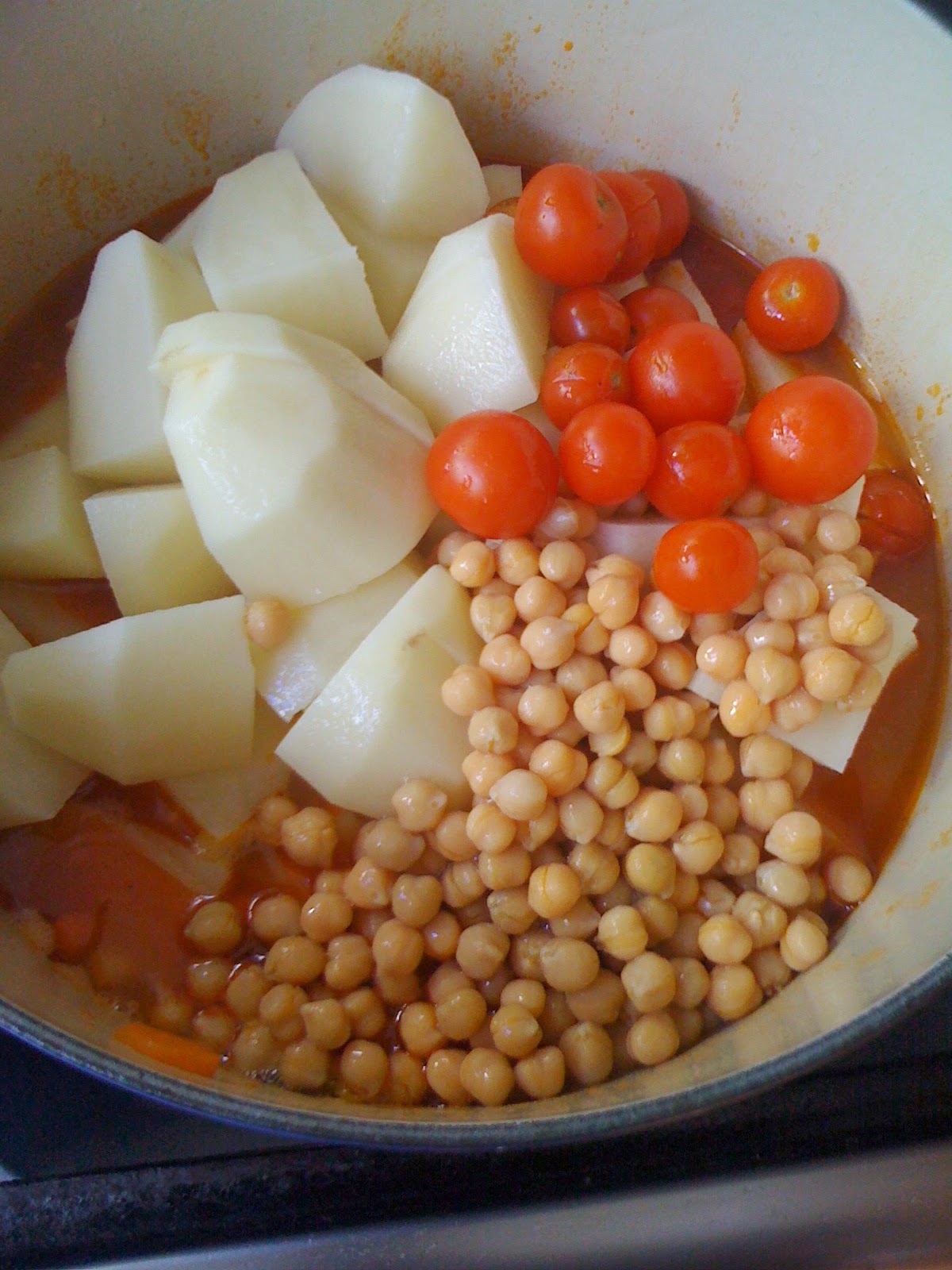 Place 300 ml warm water in a large mixing bowl, add 2 tsp active yeast granules and 1/4 tsp raw sugar. Wait 5 minutes then add 500 g high grade flour and 1 tbsp wheat gluten flour, plus a good pinch of salt. Mix well then dust with four, cover with cling film and let it rise for 2 hours. After 2 hours place a little olive oil on your hands and then gently mix the dough, pick it up and place it on a baking sheet cut so that it will fit you over tray (I have a 90cm oven so one long tray is good for me, for a standard oven divide the dough into two pieces). Roll the dough to cover the baking paper and then place on the baking tray. Brush with more oil if you like, then cut the cherry tomatoes into halves and place over the down, pressing them down lightly. Sprinkle with salt and oregano (chopped garlic too if you like).