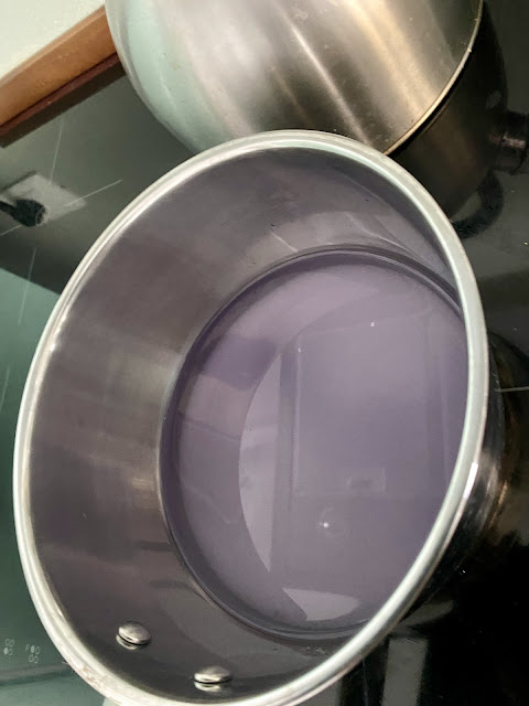 A cup of frozen blueberriesa few cubes of nata de coco in syruplavender petals2 tbsp sugar1x400ml can coconut cream +same amount in boiling water to rinse the can1 tsp agar agar