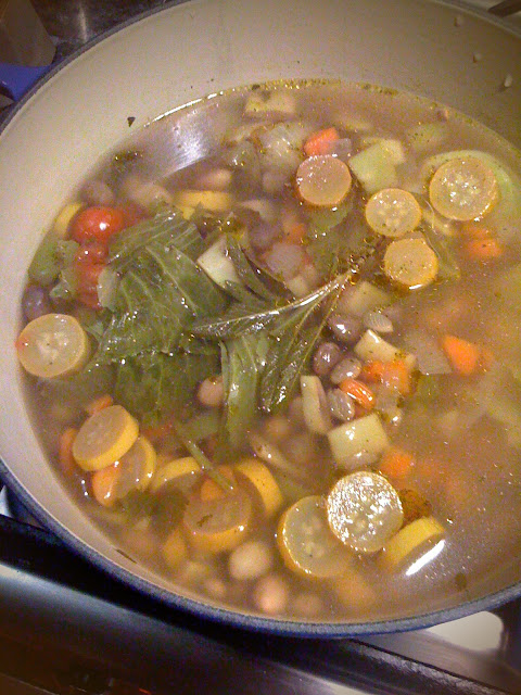 With a food processor finely chop the vegetables, then put in a pan with the olive oil and sauté for a few minutes. Then add the wine and stir well. Add the tomato puree, cover and cook slowly, stirring from time to time and adding the vegetable stock little by little. Simmer for one to two hours, the more the better, I think I went over two hours. I started in the afternoon but by the time I took the last photos it was dark, so the images are a bit blurry, sorry!