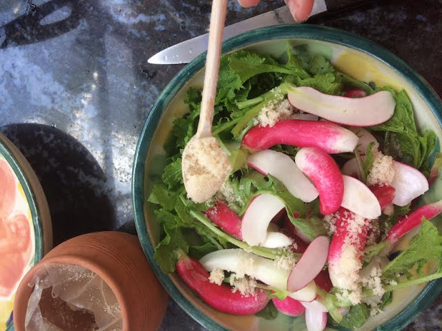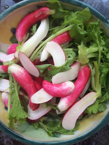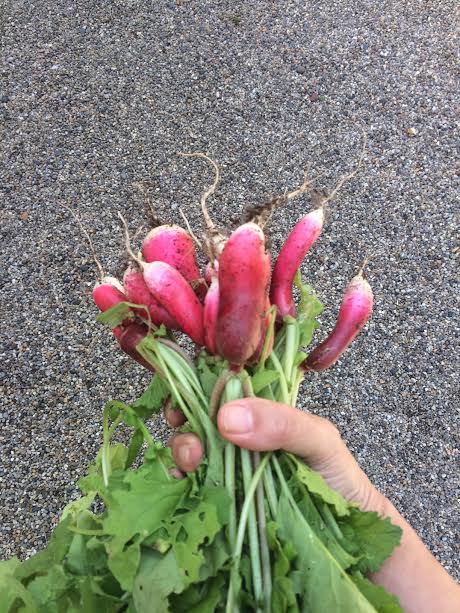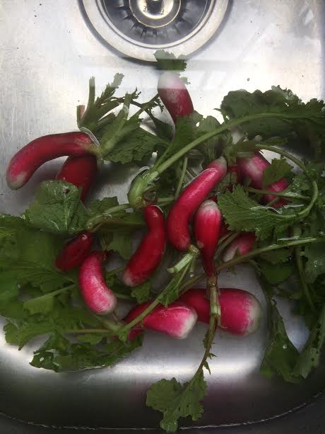 I picked some lovely radishes from the vegetable garden, did you know that you can eat the leaves too? They are full of nutrients, as well as delicious!