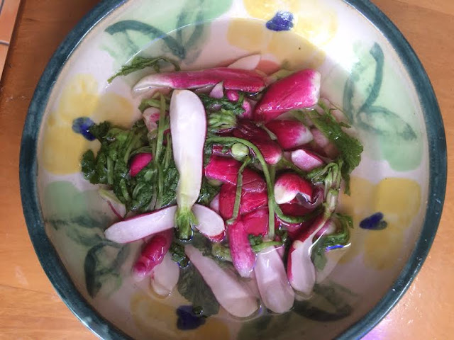 These are the radishes (with the tender centre leaves) ready to pickle.