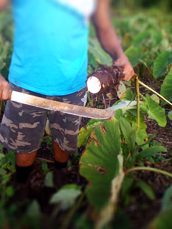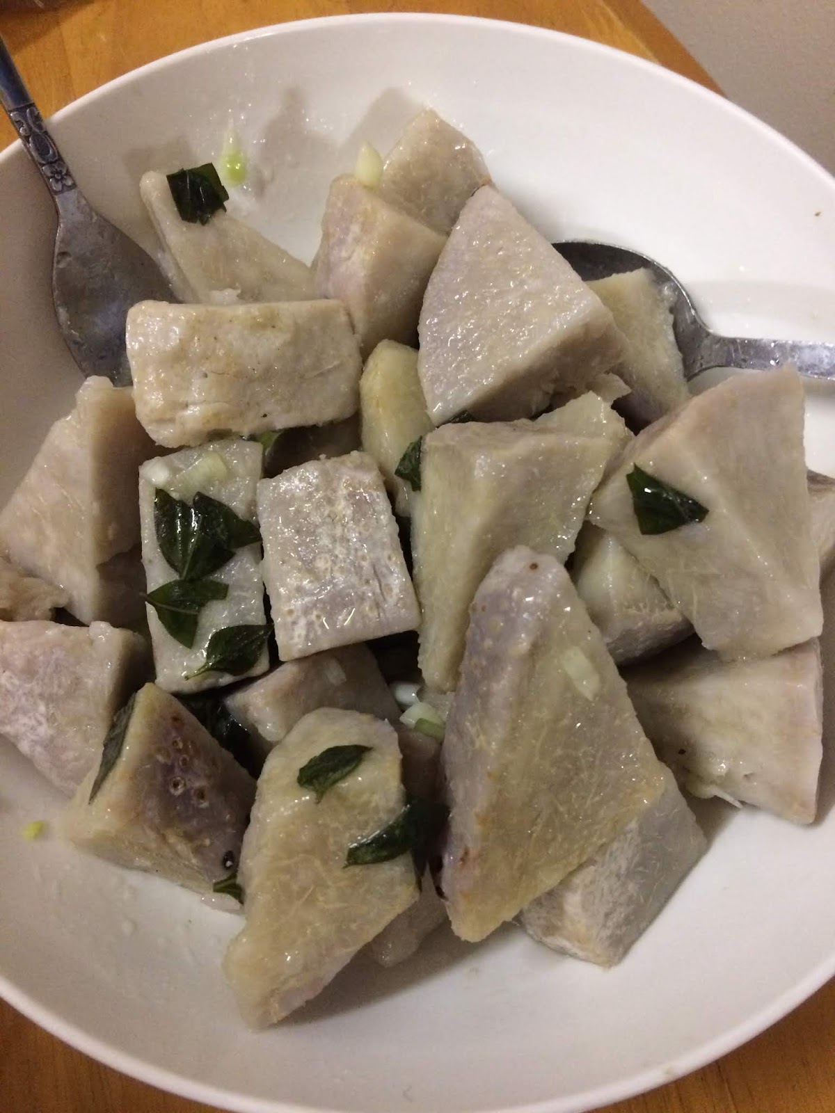 Taro is very starchy and filling, I made some salads, one with boiled taro, olive oil, salt, basil and spring onions.