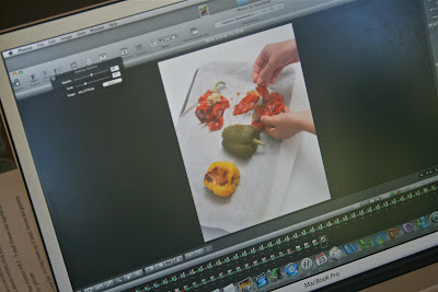 It requires even longer than propping, you are shopping for the ingredients, and prepare the food (lots of it, we usually shoot 10 to 12 dishes in one day). If only some of the recipes in your book require photos, choose carefully among those that are more photogenic, or those that need a picture because they may be unfamiliar to the readers. In my new book every single recipe has a photo, plus there are many step by step photos. Basically it is a good workout for me, since I don't have two cooks in the kitchen and a stylist in the dining room (like in the video).