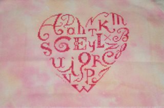 We didn't do much else. Friday night I stayed up watching 24 episodes. Sam, you were right, I kept doing the "one more" thing. I did finish my two pieces of Annette's RR. I only have a picture of one. I used parts of Elizabeth Designs Garden of My Heart.