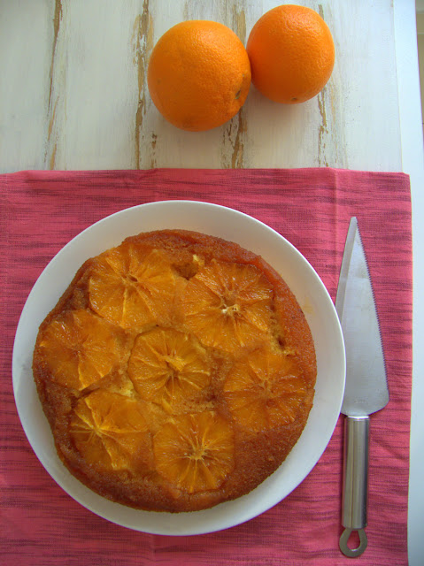 Za biskvit miješati maslac i šećer, dodati jedno po jedno jaje, koricu naranče i unutrašnjost mahune vanilije. Naizmjence dodavati prosijanu smjesu brašna, soli i praška za pecivo i sok od naranče. Smjesom prekriti naranče i peći u zagrijanoj pećnici 40 minuta na 180 stupnjeva. Kad je kolač pečen ostavi ga da se hladi 15tak minuta pa izvrnuti na tanjur za posluživanje.