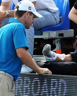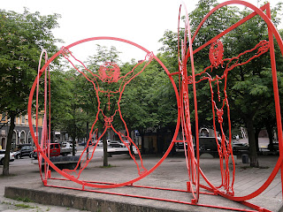 Two statues resembling moais - Easter Island statues - in the Nacka Strands district of Stockholm