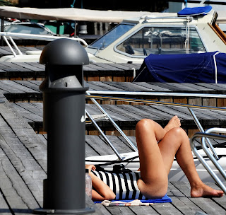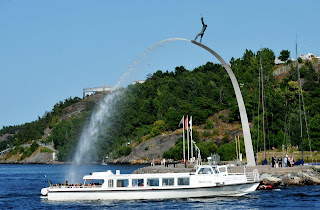 Two statues resembling moais - Easter Island statues - in the Nacka Strands district of Stockholm