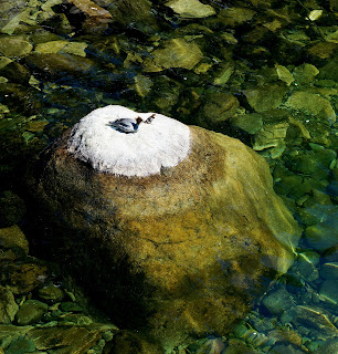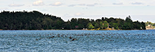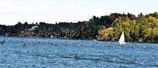 Two statues resembling moais - Easter Island statues - in the Nacka Strands district of Stockholm