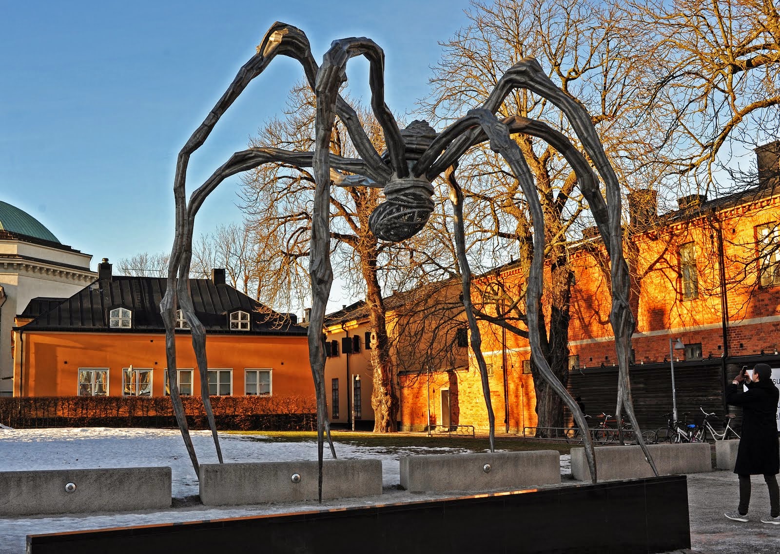 Two statues resembling moais - Easter Island statues - in the Nacka Strands district of Stockholm