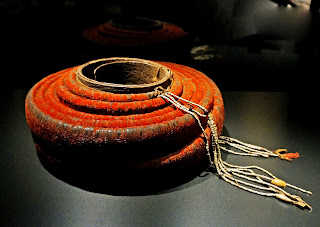 red feathers of this money were integrated into striplike coils of fiber. The feathers came either from the parrot Trichoglossus massena,