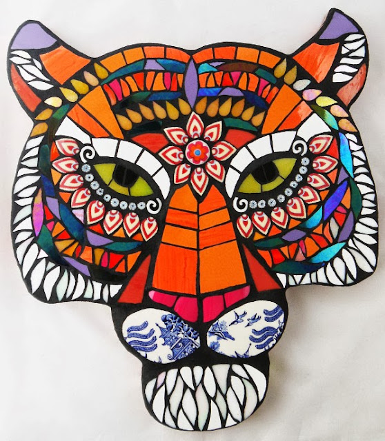 One of the perks of my job at Craft Finder is finding and learning about new British designers and makers and Amanda Anderson is one of those people. Her mosaics are inspired by folklore and traditional stories involving animals, birds and metamorphosis. She uses stained glass in her work and I wonder if that is what helps gives it such vibrance.