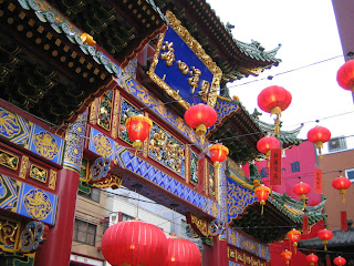 Domenica mio marito ed io siamo andati a Chinatown col treno.Ci sono stati i festeggiamenti per il Capodanno cinese, grande ricorrenza non solo per i cinesi della Cina continentale, Hong Kong, Taiwan ecc, ma anche per le comunita' cinesi qui in Giappone e in altre parti del mondo.C'era un viavai di gente incredibile. Era cosi' affollata Chinatown che e' stato persino difficile camminare e farsi spazio tra le viuzze strette del quartiere.