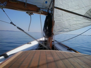 Moi boa travesía con vento frouxo pero suficiente para facer avanzar o barco e poder ir relevando a caña entre toda a tripulaciòn. Vento perfecto para navegar con nenos e cunha tripulación que quere disfrutar do mar sen sobresaltos.